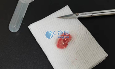 2、将解冻的肺组织样品,剪成黄豆粒大小的碎块